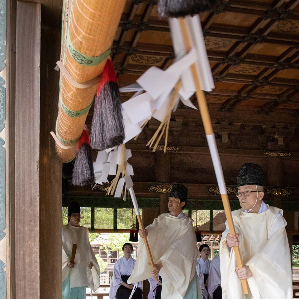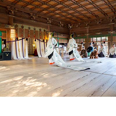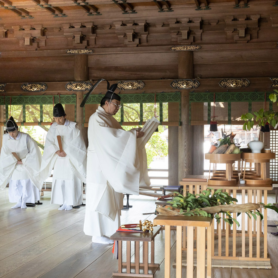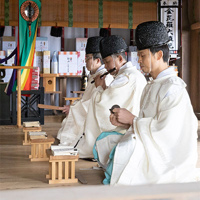 御本宮の御祭神は、大物主神と崇徳天皇です。古来から農業・殖産・医薬・海上守護の神として信仰されています。境内では、神様に奉仕する神職・巫女が一年を通して様々な祭典・神事を行っています。