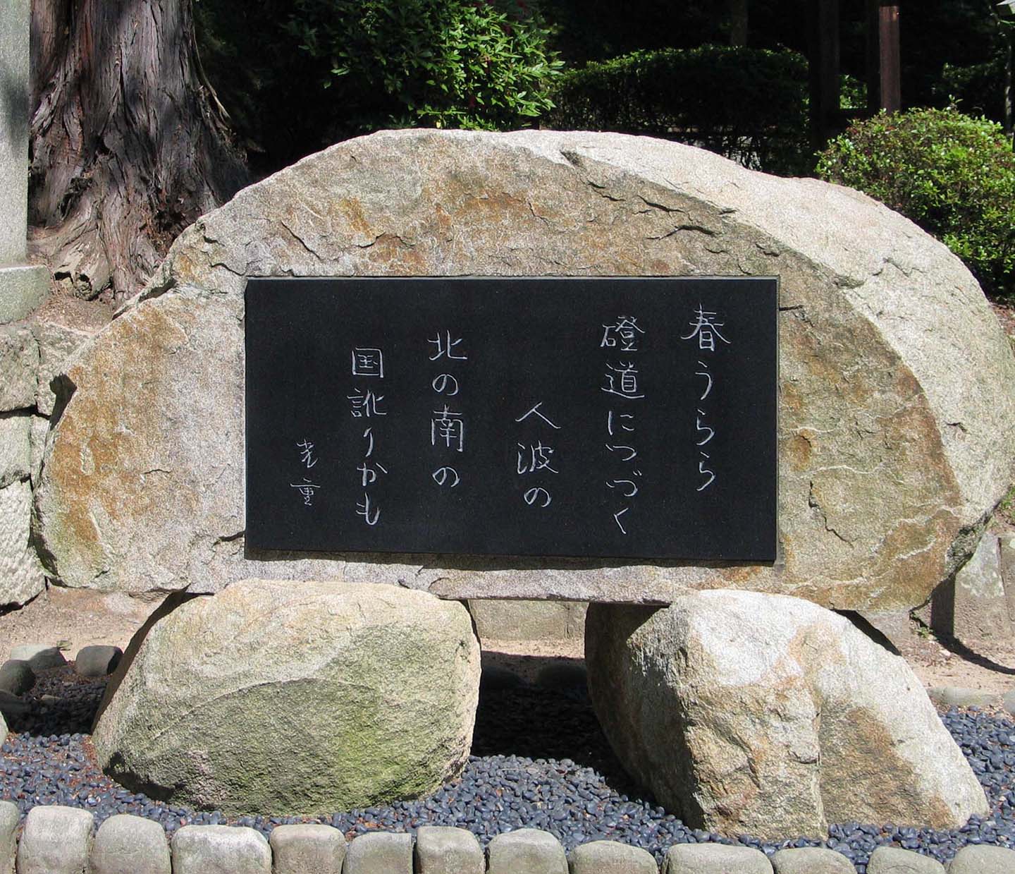 平成十一年七月二十一日に、当宮桜馬場に建立された先代琴陵光重宮司の歌碑があります。