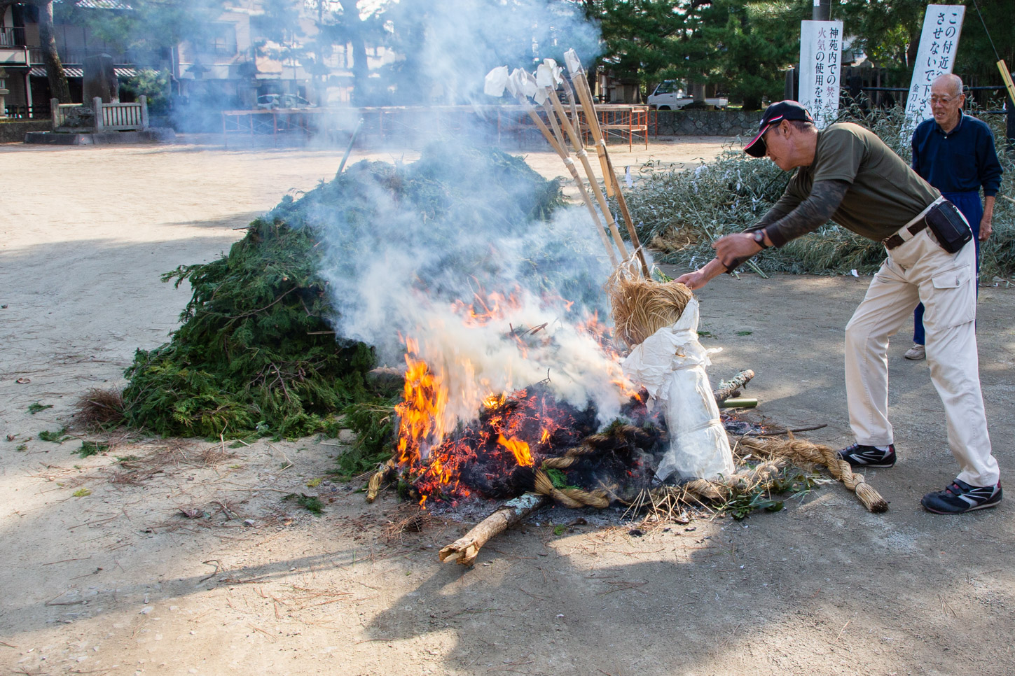 10月15日、「焼払神事」を齋行します。祝舎の建物を取り壊し、その用材や御幣などを焼払います。46日間の長きにわたる例大祭が終了します。
