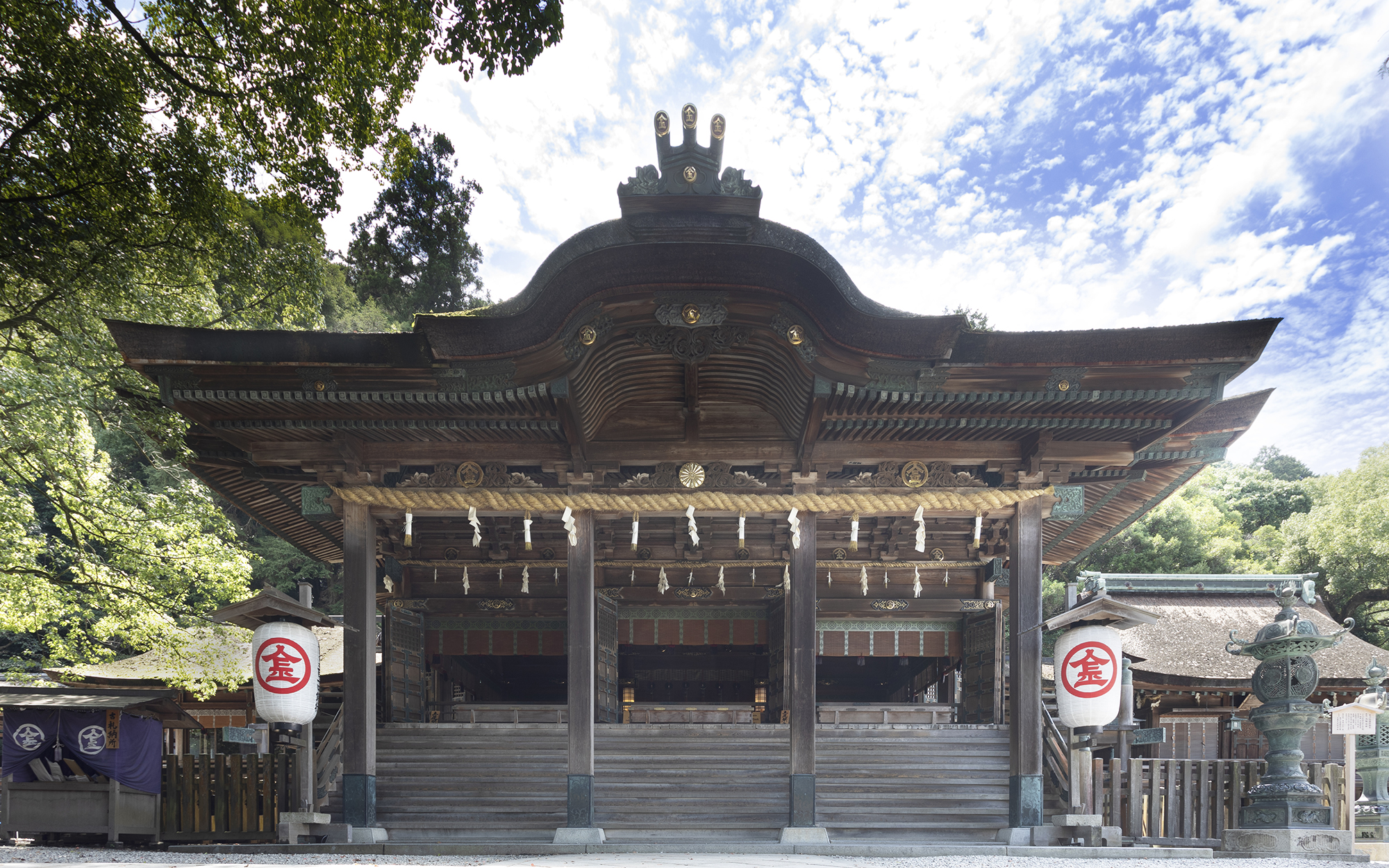 御本宮は、琴平山(象頭山)の山中、海抜251メートルの石段785段目に鎮座しています。